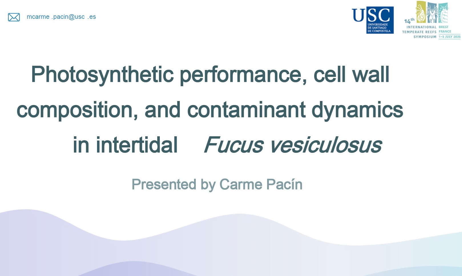 Esta investigación presentada por Carme Pacín analiza cómo la posición microtopográfica y el estrés por emersión determinan la resiliencia de Fucus vesiculosus, revelando una estrecha relación entre la eficiencia fotosintética, la composición de la pared celular y la capacidad del alga para gestionar contaminantes en el litoral gallego.Autores: